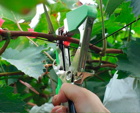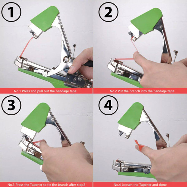 Зв'яжіть кілька рослин одним стиском вашої руки! Цей зручний інструмент зазвичай використовують на городах, у теплицях та садах щоб підв'язати виноград, помідори, огірки, перець, квіти та гілки інших рослин.